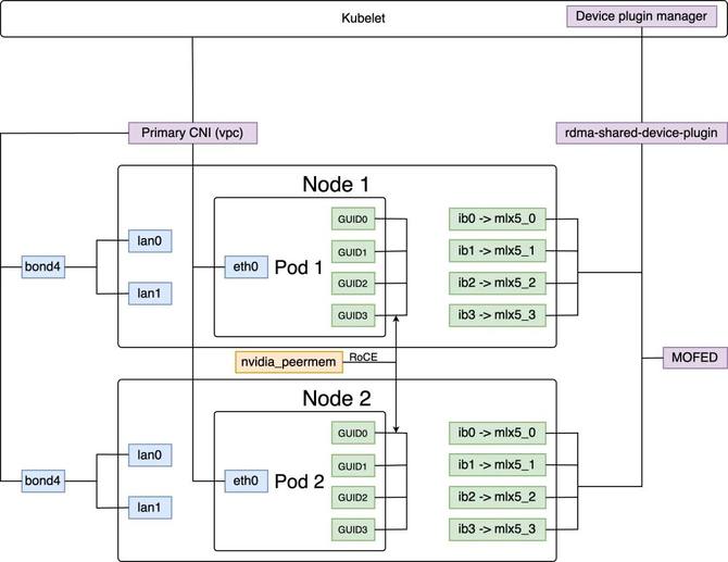 container-networking-plugins:包含多个cni插件,主要利用macvlan插件,为pod中申请的mlx资源创建新的mac地址以便从新地址转发流量。