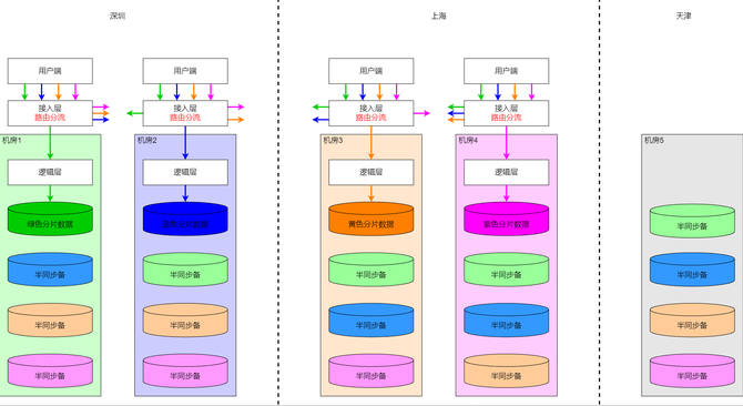 跨城分片数据,数据需分片,每个分片的主从之间做跨城同步复制。