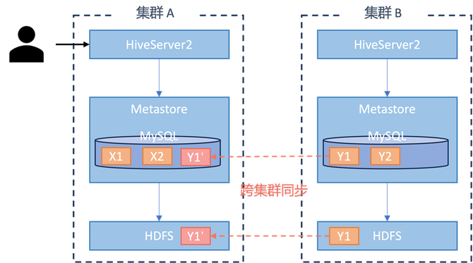 业务没法跨集群访问数据,比如跨集群 JOIN Hive table,需要在本集群创建同样的 table schema,再将对应的表数据(HDFS 文件)同步到本集群。这创造了大量的跨集群数据同步任务,难以维护且造成大量数据冗余。
