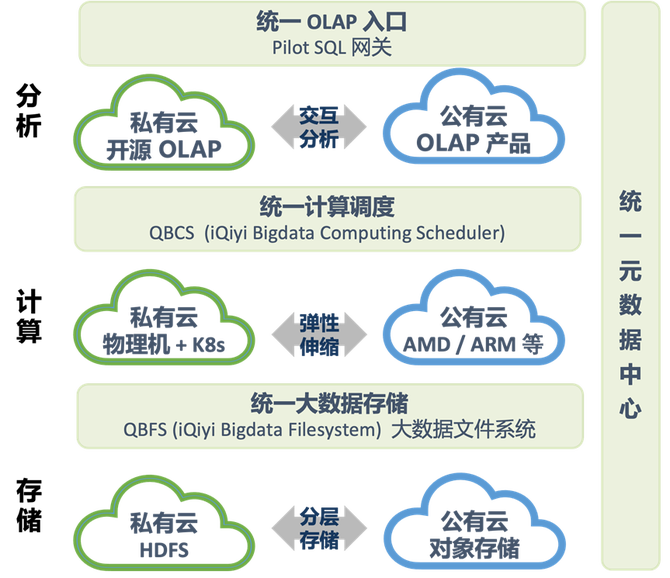 混合云 OLAP:爱奇艺 OLAP 体系由 Hive、Spark SQL、Trino、ClickHouse、StarRocks 等开源 OLAP 引擎组成,并通过 Pilot SQL 网关统一访问入口。后续我们计划引入公有云 OLAP 产品作为补充,并通过 Pilot SQL 网关来统一调度。