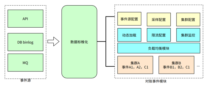 流量过载保护,在进行对账事件源处理,对账任务执行,查询三方数据过程中进行逐级限流,对线上系统做兜底保护。