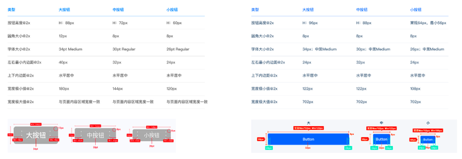 例如 Button 按钮中,Ctrip 具有常规、次级、辅助三种类型按钮,Trip 具有线性和填充两种类型按钮,合并后为五种状态:常规、行动点、支付、次级、辅助。对应关系更加清晰,且易于设计语言迭代或者微调。