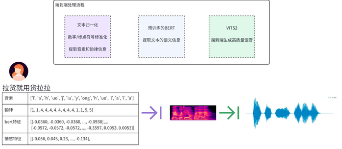 高效迁移学习:针对目标音色进行轻量化调整,快速适配不同音色风格。
