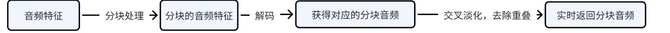 解码器首先将文本编码器提取的特征转化成音频特征,并分块处理。每个分块实时解码为语音,经过去重叠处理确保块间平滑衔接。通过这种分块生成和即时返回设计,模型在保持语音自然度的同时,实现了高效的实时语音输出。