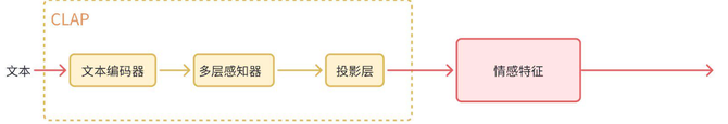 采用基于 CLAP(Contrastive Language-Audio Pretraining)的情感特征分类模型,从文本中提取情感嵌入,进一步增强语音的情感表达能力。
