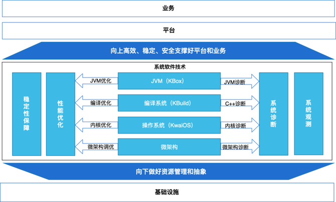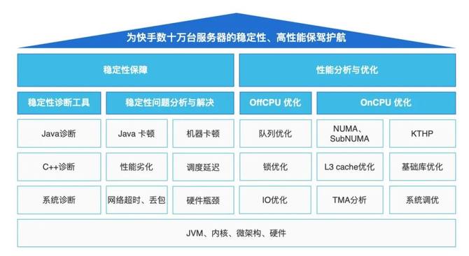 快手的系统软件技术涵盖了操作系统、编译构建、运行时(JVM)、系统诊断、系统观测等多个方向,每一环节都至关重要。其中,操作系统作为最基础和核心的软件,更是我国亟待突破的关键核心技术之一。