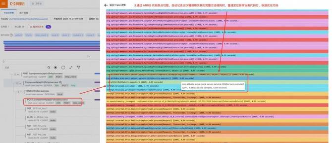 3. 根据代码热点记录的当次慢请求关联的完整本地方法栈,直接定位业务异常代码行,指导研发同学优化代码。
