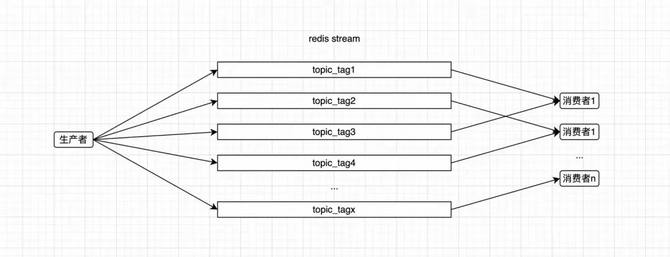 在交通使用MQ的场景中,上游应用通过哈希规则计算数据的tag,往同一个topic写数据,下游应用的每台机器消费固定的tag,保证同一类数据在同一台机器上进行处理,本文基于这种生产消费模式介绍Redis Stream SDK(C++)的实现。