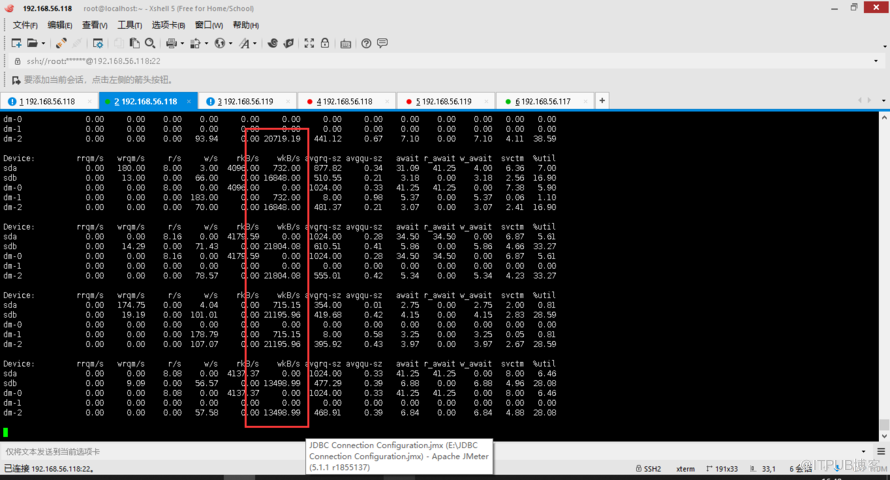 备库:(明显红色框框看到有数据传输)