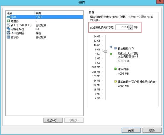 将内存增加到6G。(由于考虑到会在ESXi中创建虚拟机安装vcenter,vcenter至少需要4G内存,故建议为ESXi至少分配6G内存,如果在ESXi的虚拟机中安装vCenter,2GB就可以了)