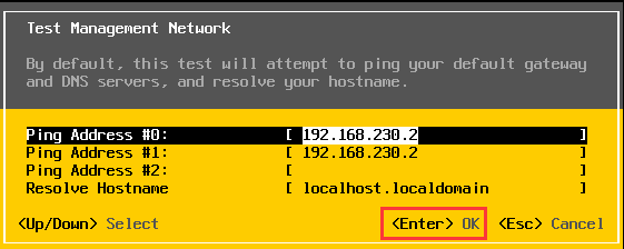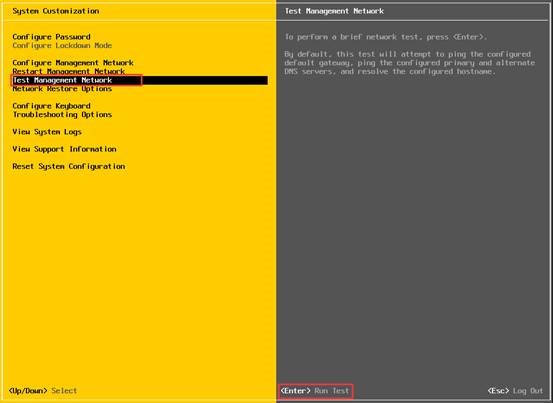 选择“Test Management Network”,回车进行网络测试。