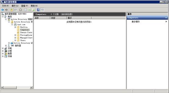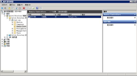 进入服务器管理器,确认Domain Contrlooers下面有BJB-WEB这台机器,而Computer下面还没有加入域的机器。