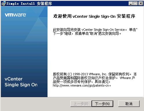 启动vCenter Server安装程序,选择Simple Install,点击“安装”。