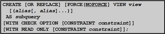 SQL> create or replace view empvu80(id_number,name,sal,department_id)