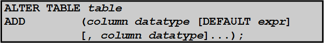 SQL> alter table dept80 add(first_name varchar2(20) default 'aa' not null);