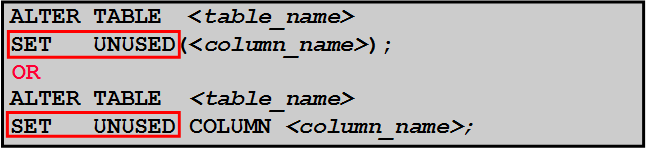 - Drop columns and set column UNUSED