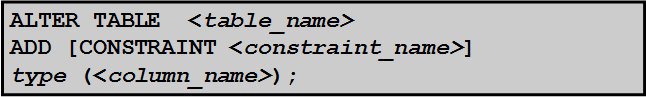 ALTER TABLE emp ADD CONSTRAINT emp_id_pk PRIMARY KEY (emp_id) USING INDEX emp_id_idx?