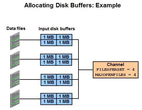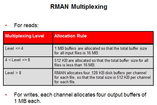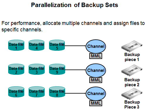 当分配多个通道创建多个备份集时,RMAN自动并行写入到备份集。