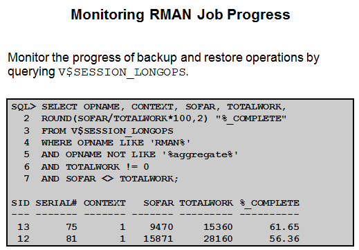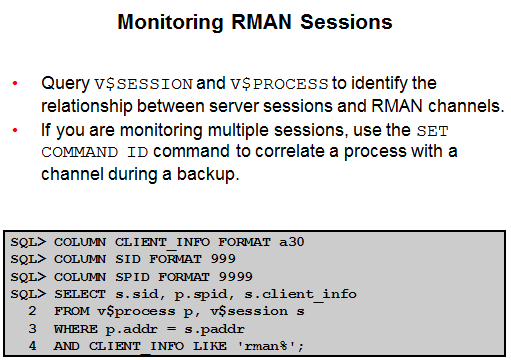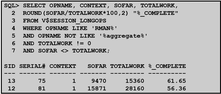 当只有一个RMAN会话活动时,执行下面语句查询: