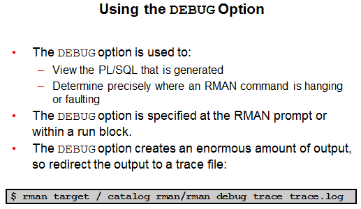 RMAN> BACKUP INCREMENTAL LEVEL 1 CUMULATIVE DATABASE;