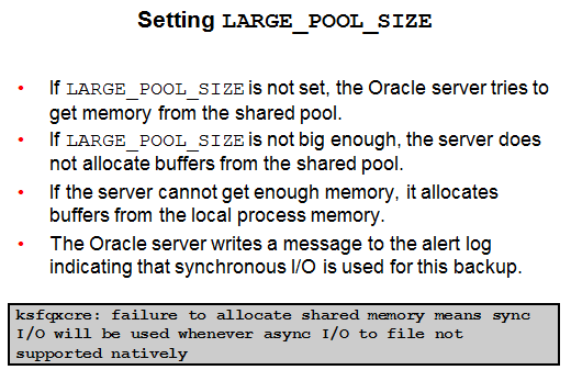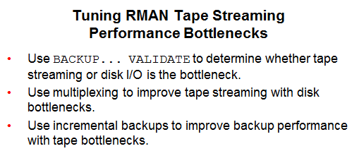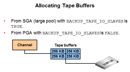实际测试表明,如果备份设备是带库,并行通道数等于带库中带机的数量会达到最佳的性能。需要注意的是,如果并行通道数多于带机数,会出现Backupset在多盘磁带混合存放的情况因而会影响到恢复的速度。