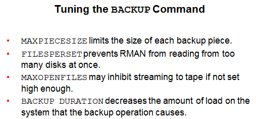 - MAXPIECESIZE,FILESPERSET,MAXOPENFILES对RMAN性能的影响