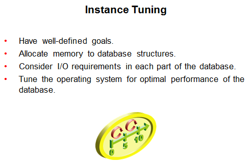 - 实例调整是数据库参数和操作系统参数的实际调整,以获得更好的数据库性能。