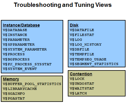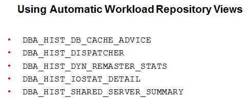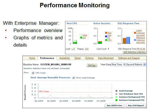 EM显示的信息基于数据库中的性能视图。可以直接用SQL*Plus访问这些视图。