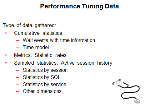 数据库服务器软件捕捉到它自己的操作的信息。收集三种主要类型的数据:累积统计,度量和抽样统计。