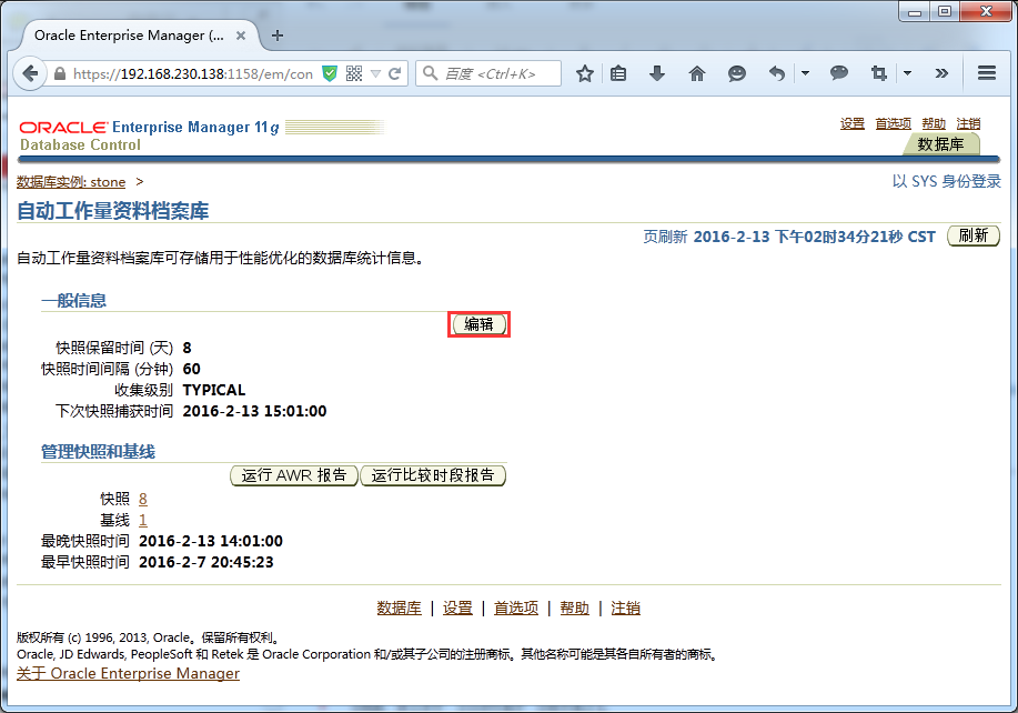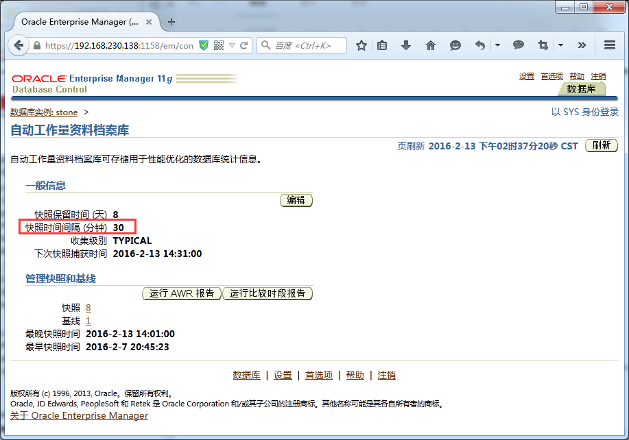 抽样统计是当参数STATISTICS_LEVEL设置为TYPICAL或者ALL时自动产生的统计数据。可以查看在过去收集的会话和系统统计数据。