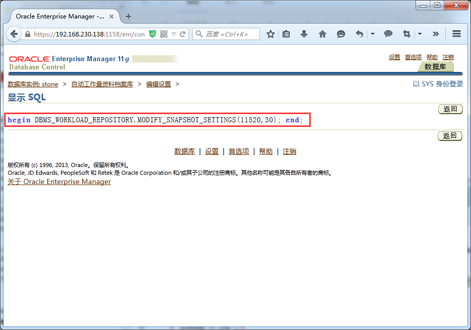 - STALE_PERCENT用来指定阈值,该值是自上次统计数据收集以来修改的百分比。超过设定的值表示就需要重新收集统计数据。上图中的例子表示将默认的10%修改为13%。
