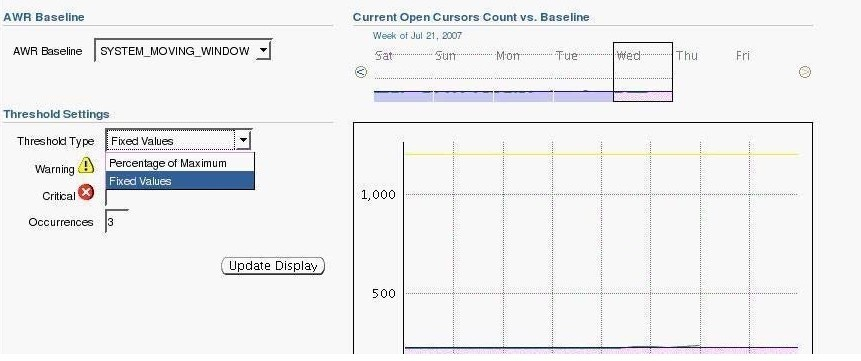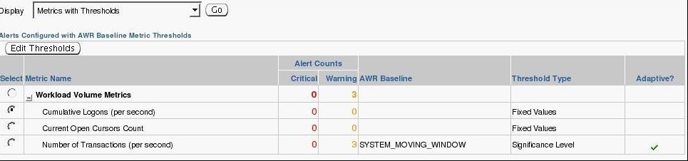 度量是每单位统计计数。该单位可能是时间(如秒),事务或会话。度量提供了一个主动监测性能的基础。可以设定一个度量的阈值以便生成告警。例如可以设置阈值为之前每毫秒读取的最大值或者归档日志区使用率的95%。