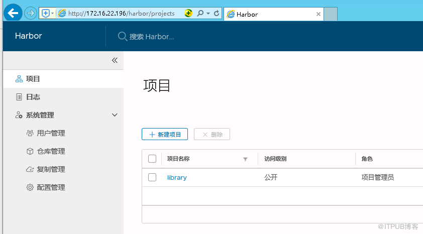 安装完后,访问 http://172.16.22.196,默认用户名admin,密码Harbor12345