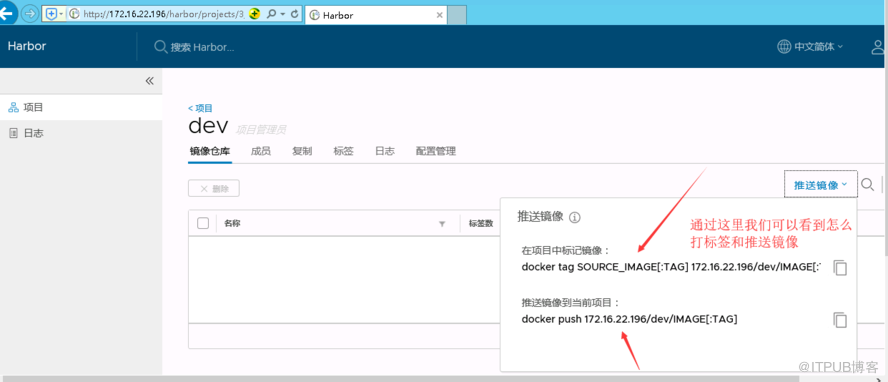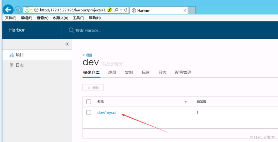 [root@k8s-node3 ~]# docker push 172.16.22.196/dev/mysql #不加标签标示把mysql下所有标签的镜像都推送到harbor上 The push refers to a repository [172.16.22.196/dev/mysql] a968f24d4187: Pushed f8cb294d5d80: Pushed 489bddb9c55e: Pushed 22b402e93939: Pushed 8aeebb3964c1: Pushed 94f8d8f5acbf: Pushed c0c26734fb83: Pushed 4801a487d51a: Pushed aae63f31dee9: Pushed 6f8d38b0e2b6: Pushed cdb3f9544e4c: Pushed 5.7.22: digest: sha256:1d3119703eb04855c971a9ec24646184444fa1bd889b201de3ce8904c35eb627 size: 2621