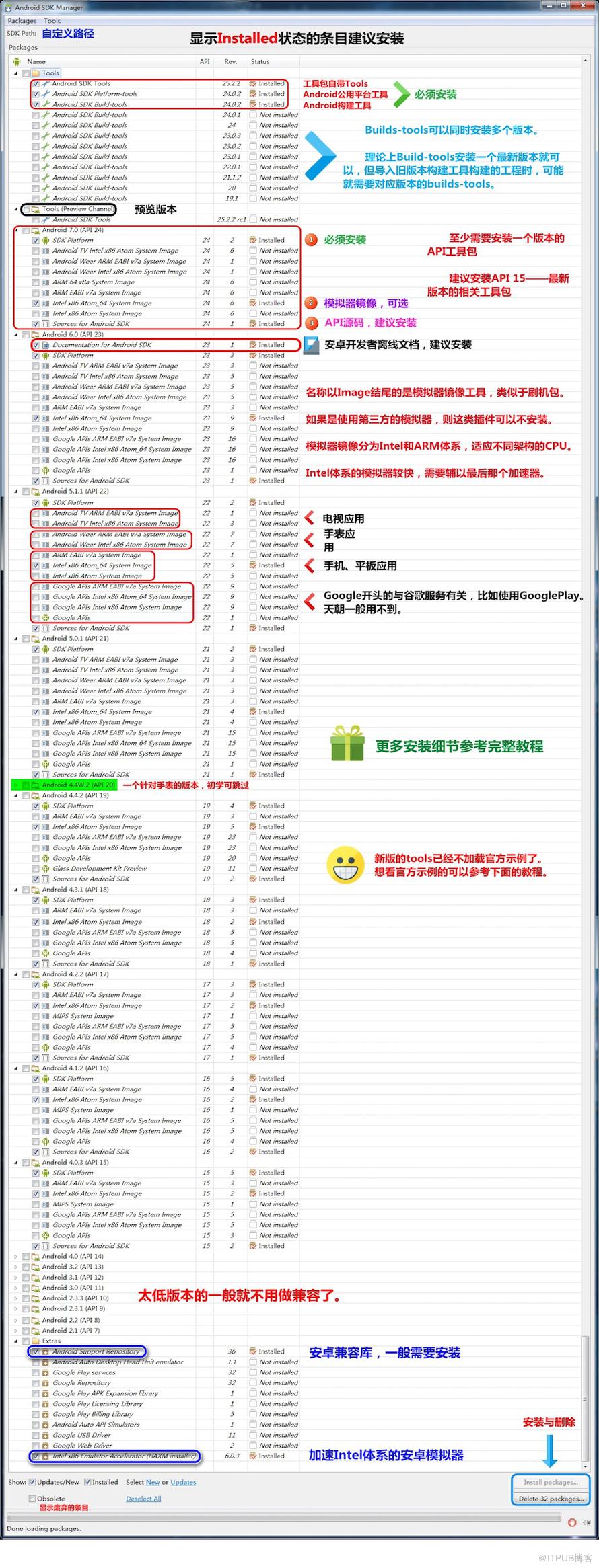 3、选择与步骤三所对应的API版本,然后点击Install packages….