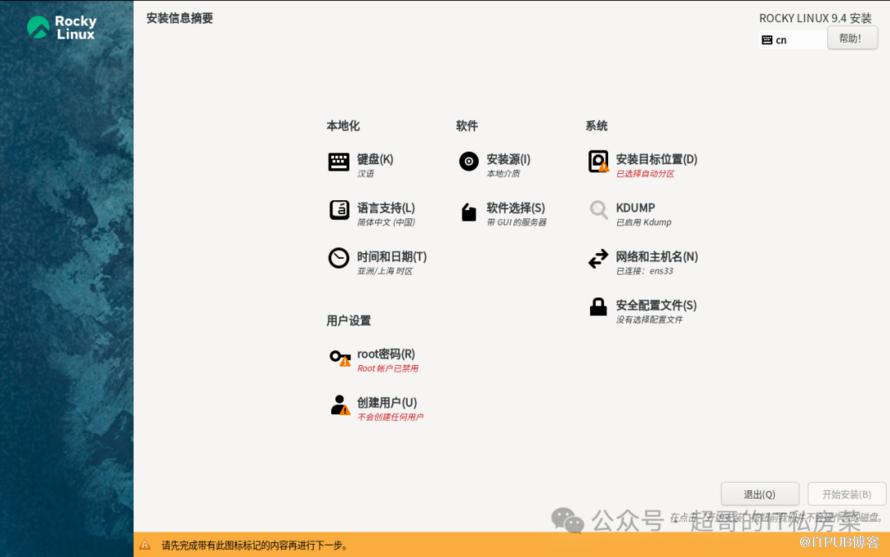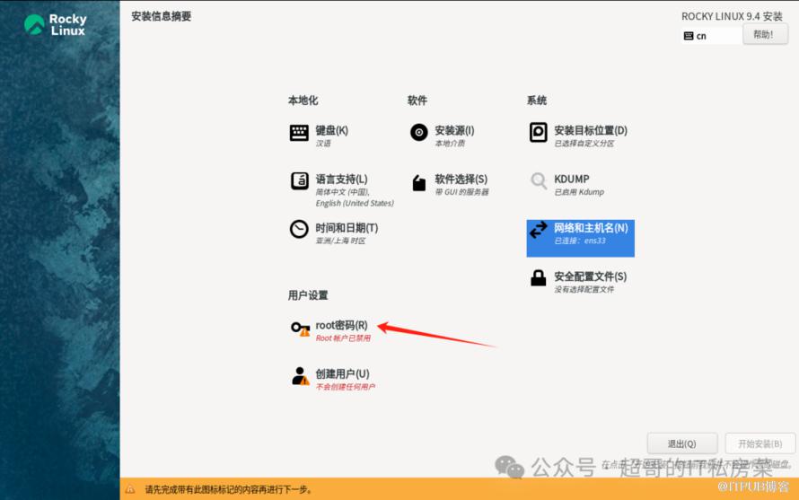 安装信息摘要(这里可以完成Rocky Linux版全部设置)