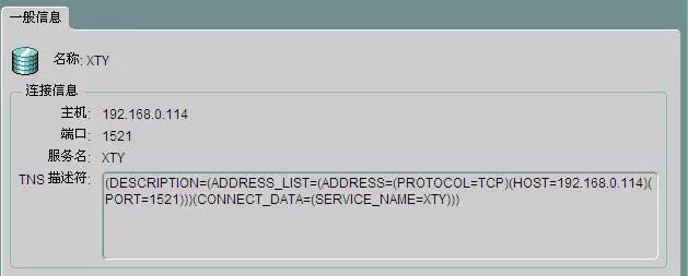 图1中显示的被选中的数据库为“XTY”,图2显示的是这个库的连接字符串。