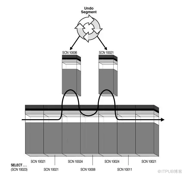 Oracle就是这样,以层层嵌套的方式,查找整个undo块的链表,直到发现ITL槽里的SCN号小于等于发出查询时的那个SCN号为止。正常来说,当前undo块里记录的SCN号要比上一个undo块里记录的SCN号要小。