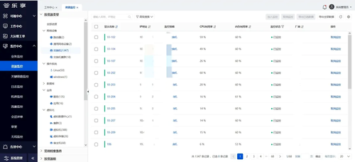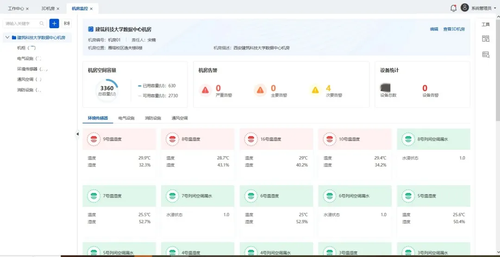 ● 实现动力环境和机房融合,统⼀展示机房、动环实现机柜布局和机柜设备可视化,从机房⸺机柜⸺IT设备⸺设备可视(状态、指标可观测)一体化展示