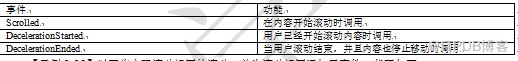 在滚动视图中一般会使用到一些事件。这里将常用到的一些事件做了总结,如表2-14所示。