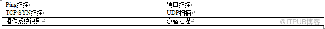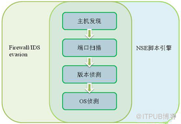 在这四项基本功能的基础上,Nmap提供防火墙与IDS(IntrusionDetection System,入侵检测系统)的规避技巧,可以综合应用到四个基本功能的各个阶段;另外Nmap提供强大的NSE(Nmap Scripting Language)脚本引擎功能,脚本可以对基本功能进行补充和扩展。