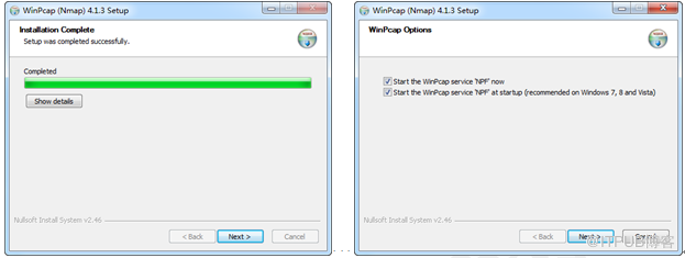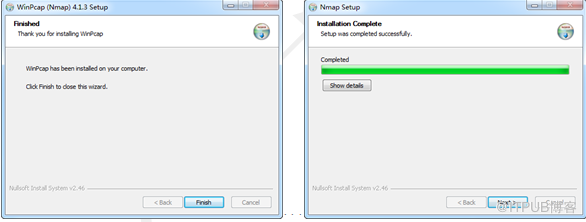 图1.9 WinPcap组件设置完成 图1.10 Nmap安装完成信息