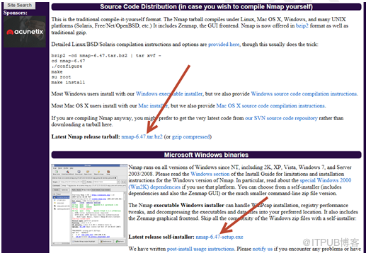 Nmap工具的官网是http://nmap.org/。在该官网提供了Nmap各种类型包的下载地址。其中,下载地址是: