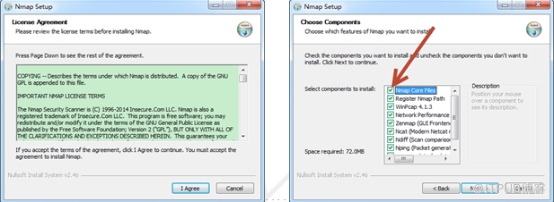 (2)该界面显示了安装Nmap工具的许可证协议。这里单击I Agree按钮,将弹出选择组件对话框,如图1.4所示。