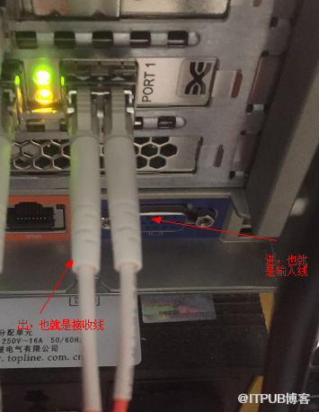 很多的光纤线,进出口是合并在一起的,位置不对是插不进去的,但是这个是分开的,并且插错了也能插进去,这就很必须要记住正确的位置了,或者知道这个原则之后,也可以很轻松的插好。oracle rac的连接共享磁盘的光纤线,一定要正确插,并且不要有松动,否则会导致脑裂或者数据库起不来.