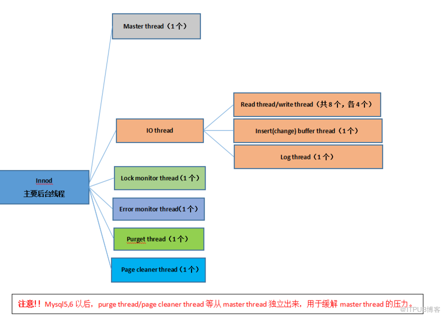 2、Page cleaner thread是5.6.2引入的一个新线程(单线程),从master线程中卸下buffer pool刷脏页的工作独立出来的线程(默认是启一个线程);