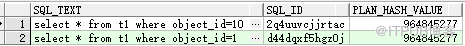 where sql_text like 'select * from t1 where object_id%';