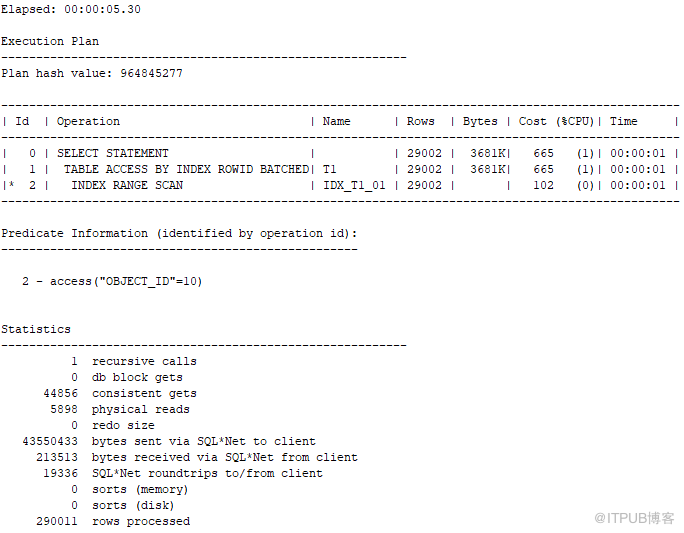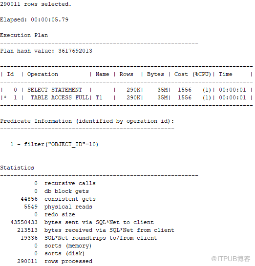 object_id=1 0 时结果集有 290011 条数据