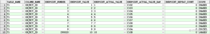 -- 下面收集字段 OBJECT_ID 的直方图: