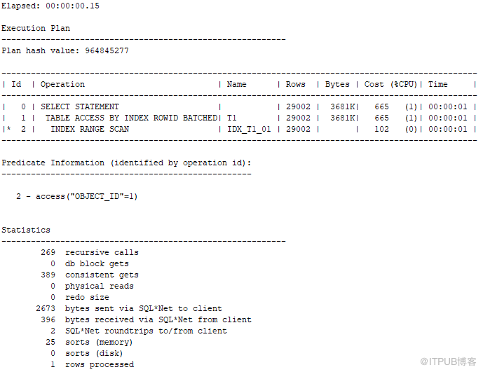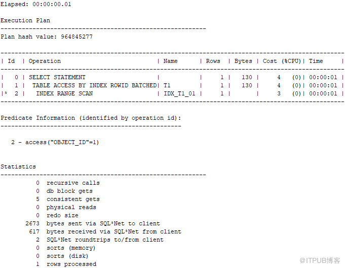 SQL> create index idx_t1_01 on t1(object_id);